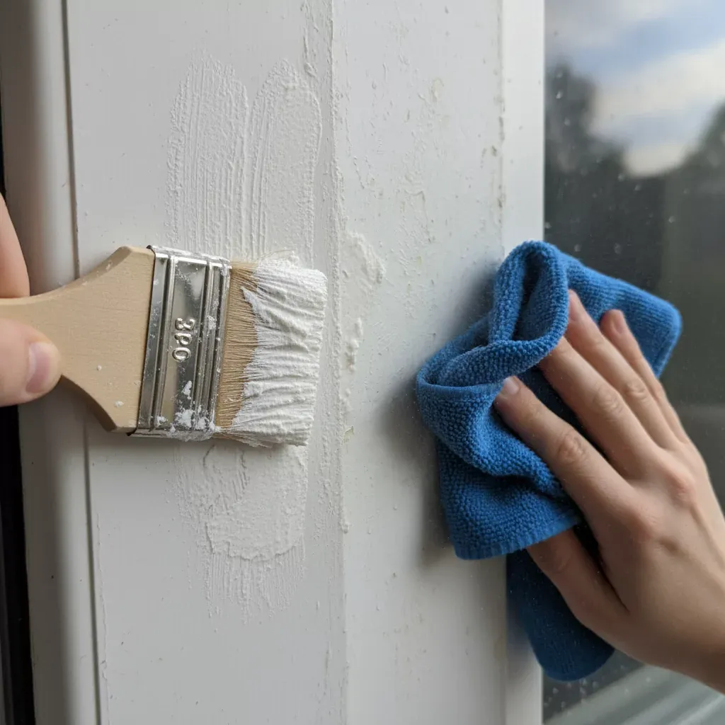 - Работайте небольшими участками, не допускайте попадания на стекло/уплотнители (при необходимости используйте маску).